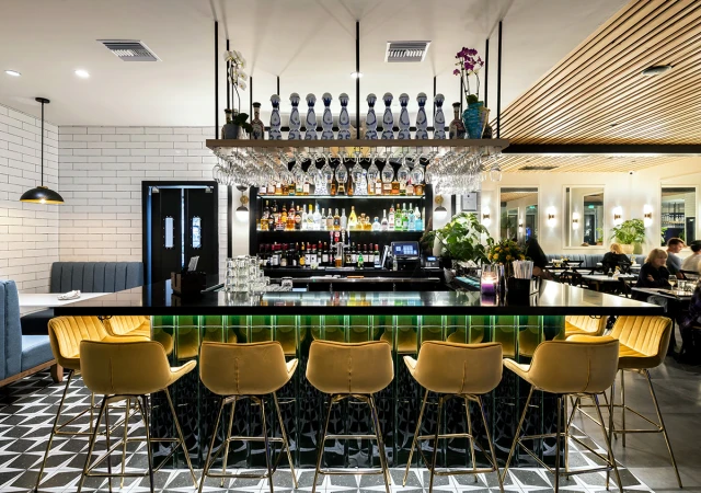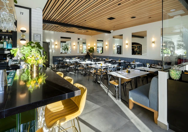 An extensive renovation to an old restaurant space in a Brentwood shopping center.